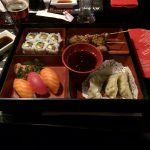 Tout d'abord le cadre et le service de ce restaurant est génial ! Mon menu comportait une petite soupe miso en entrée, une salade de chou ensuite puis le plat qui est arrivé. Les sushis et maki sont préparés par un chef devant nous et sont délicieux. Je recommande ce restaurant et ce plat !!!
