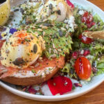 - benny – pain de campagne toasté garni d’avocat, saumon fumé ou bacon avec œufs mollets et sauce hollandaise.