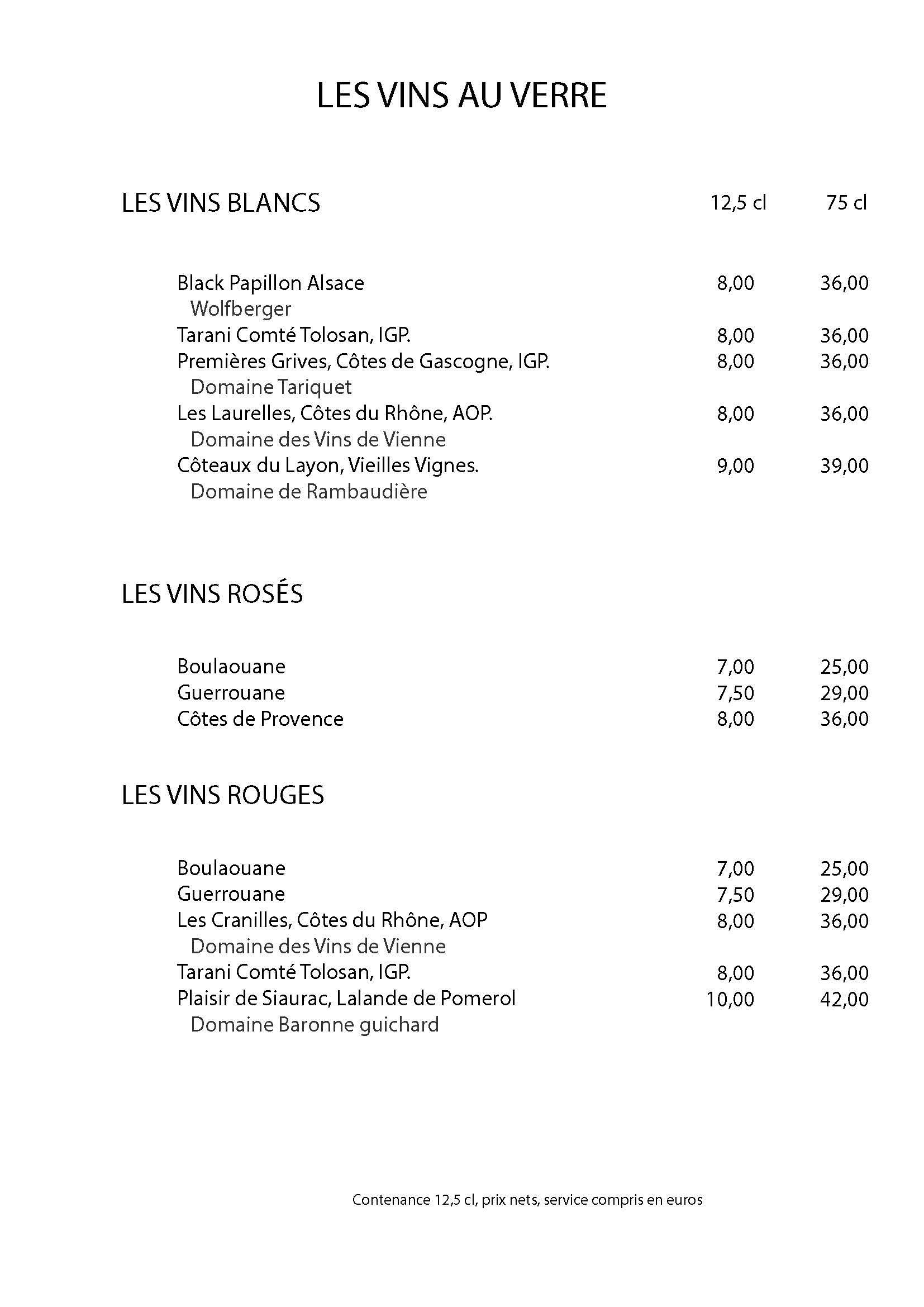 Un aperçu clair et rapide des options disponibles dans cet établissement.