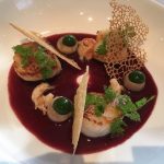 Le plat "Les belles noix de saint Jacques posées sur un jus de volaille truffé, fine tarte garniture grand-mère et œuf confit, un gel et mikado d’endives" m'a laissé sans voix ! Présentation et goût au-dessus de tout ! Le prix de 44€ est certes cher mais justifié pour ce plat.