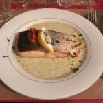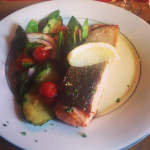 - pavé de saumon – poisson bien cuit accompagné de légumes ou garnitures.