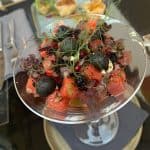 Tout d’abord un petit détail du plat: pastèque, grenache, basilic, caviar fumé, meringue, sésame noir. C’était trop bon !